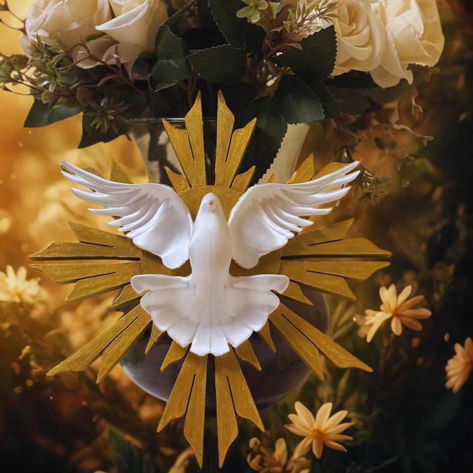 Produzido em PLA de alta qualidade e pintado à mão com detalhes em branco e dourado, este Espírito Santo combina espiritualidade e elegância em uma peça leve, durável e marcante.